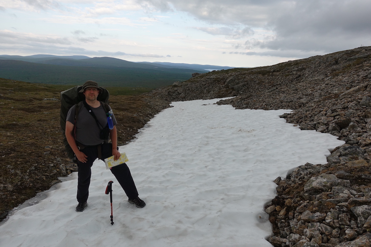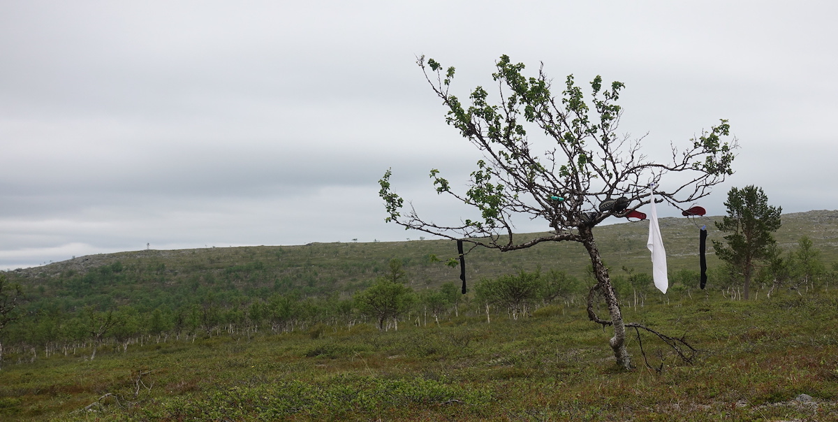 Nousimme puurajan yläpuolelle ja kuumuus alkoi todella tuntua. Ville vaihtoi jo pelkkiin boksereihin. Maisema oli todella komeaa: laakeaa ylänköä, jossa oli harvaa tuntikoivikkoa. Koivut olivat aivan saman kokoisia ja alimmat oksat olivat kuin viivottimella piirretty samaan korkeuteen. Olisiko lumiraja yleensä juuri siinä kohtaa?