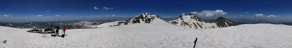 Olimme läntisellä huipulla reilun 1,5t kapuamisen jälkeen. Koville otti, mutta oli kyllä sen arvoista – vaikeampi rinne ja vielä komeammat näkymät nostivat fiilikset korkeammalle!