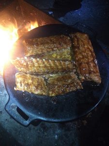 Erägourmet-menu oli Antilla nopeasti kasassa aikaisempien kokkailujen pohjalta. Heke toi Muurikka-pannun ja sillä päätettiin tehdä kaikki ruoat avotulella tulentekopaikalla järven rannassa. Mukana oli ribsejä Lidlistä, Camembert-juustokiekkoja, pekonia, munia, lettuainekset, makkaraa ja juhlajuomia. Tietysti myös Maldonia, ilman sitä eri ruoka tietenkään maistu!