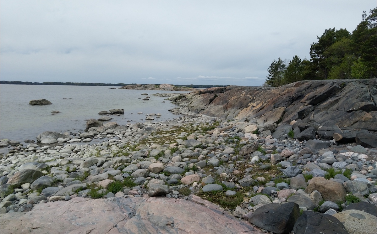 Jatkoimme rantakallioita kohti Rävbergetiä. Matkalla kohtasimme kaksi telttaporukkaa ja muutaman ulkoilijan. Meren ranta on sileitä kallioita, joita on todella mukana kulkea.