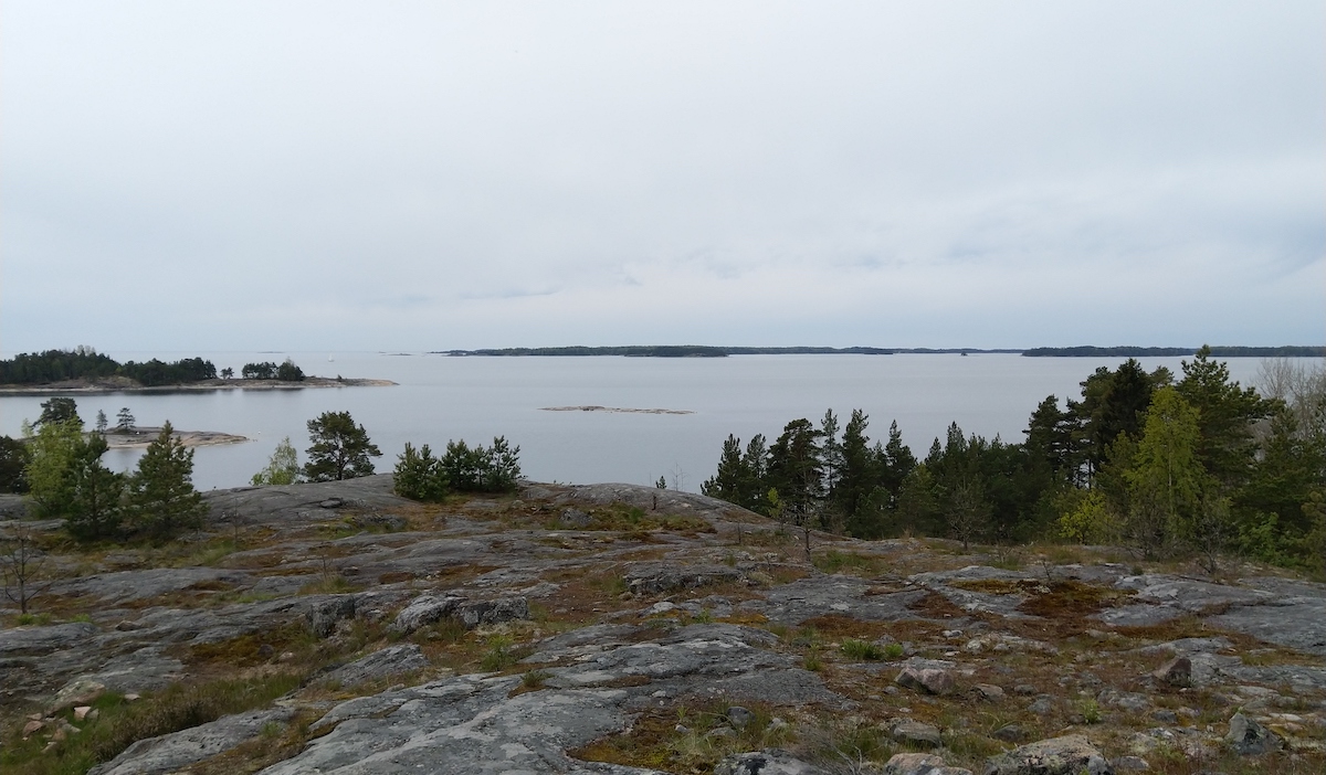 Rävberget on muuta ympäristöä korkeammalla ja sieltä näkee kauas merelle. Pidimme evästauon Rävbergetin päällä tulipaikalla.